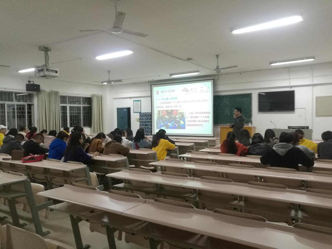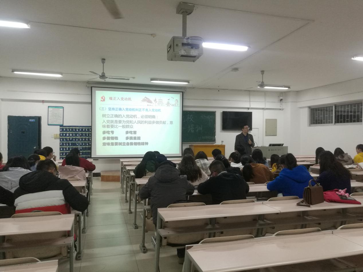 2018年11月8日19时在5栋教学楼5408教室开展第期入党积极分子培训,此次主讲人是教工一支部书记罗德仁博士,参加人员有第期39入党积极分子全体成员。