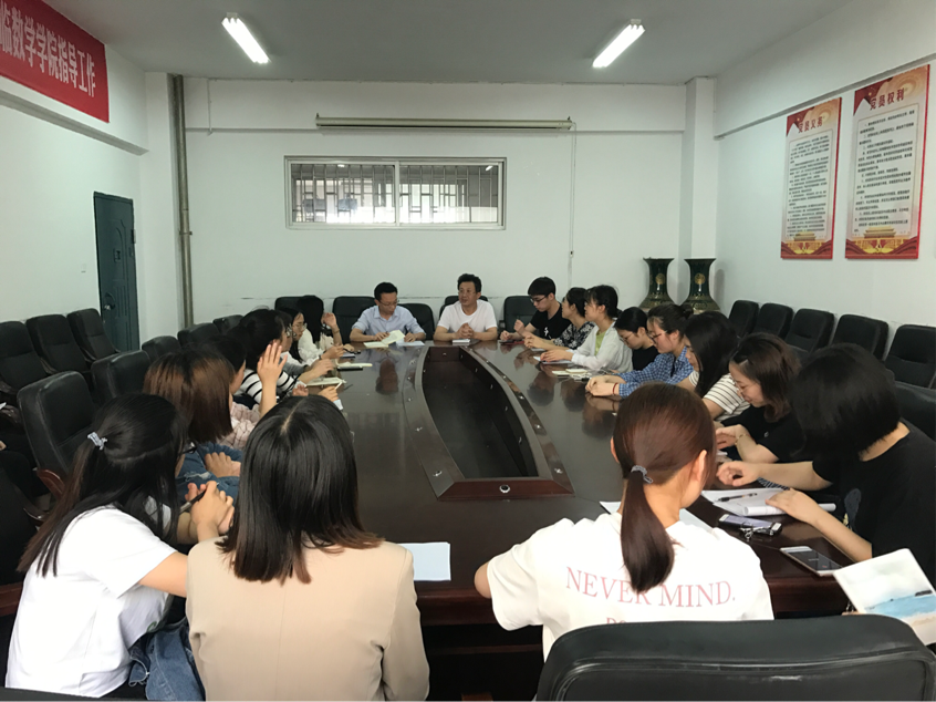 2019年5月17日15时,开云kaiyun官方网站学生第一、二支部及研究生支部于五栋会议室召开了毕业生党员教育大会,参与人员有开云kaiyun官方网站党总支书记孙明保、党总支副书记易政群、党支部书记何铁勇、党支部书记傅丹、部分毕业生党员。