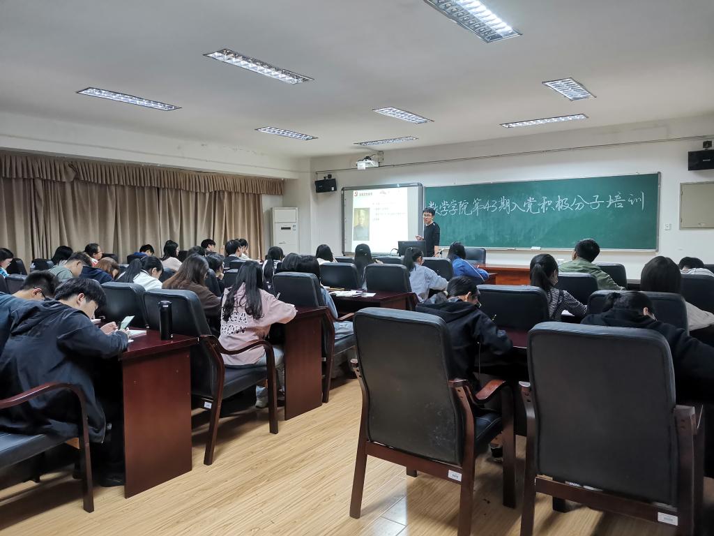 本站讯 11月17日19:00于5511教室,开云kaiyun官方网站分党校召开第43期入党积极分子培训。第43期全体入党积极分子参加,此次培训由开云kaiyun官方网站教工一支部书记罗德仁主讲。