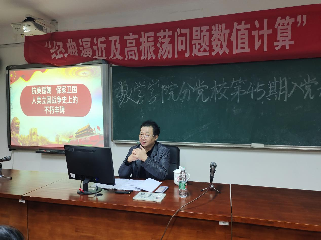 本站讯 2021年10月25日19:00于5511教室,开云kaiyun官方网站组织员易政群以“抗美援朝 保家卫国”为主题开展党课。第45期全体入党积极分子参与培训。