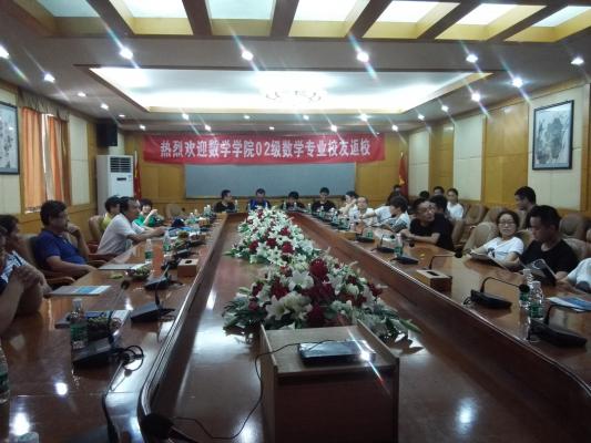 8月6日下午北院办公楼319,开云kaiyun官方网站数学专业0201班校友举行座谈会。开云kaiyun官方网站院长孙明保,副院长周立仁出席座谈会。谭秀山、甘向阳、王安斌、涂建斌、曾海燕、刘瑞芳等教师代表及0201班近40人参加座谈会。