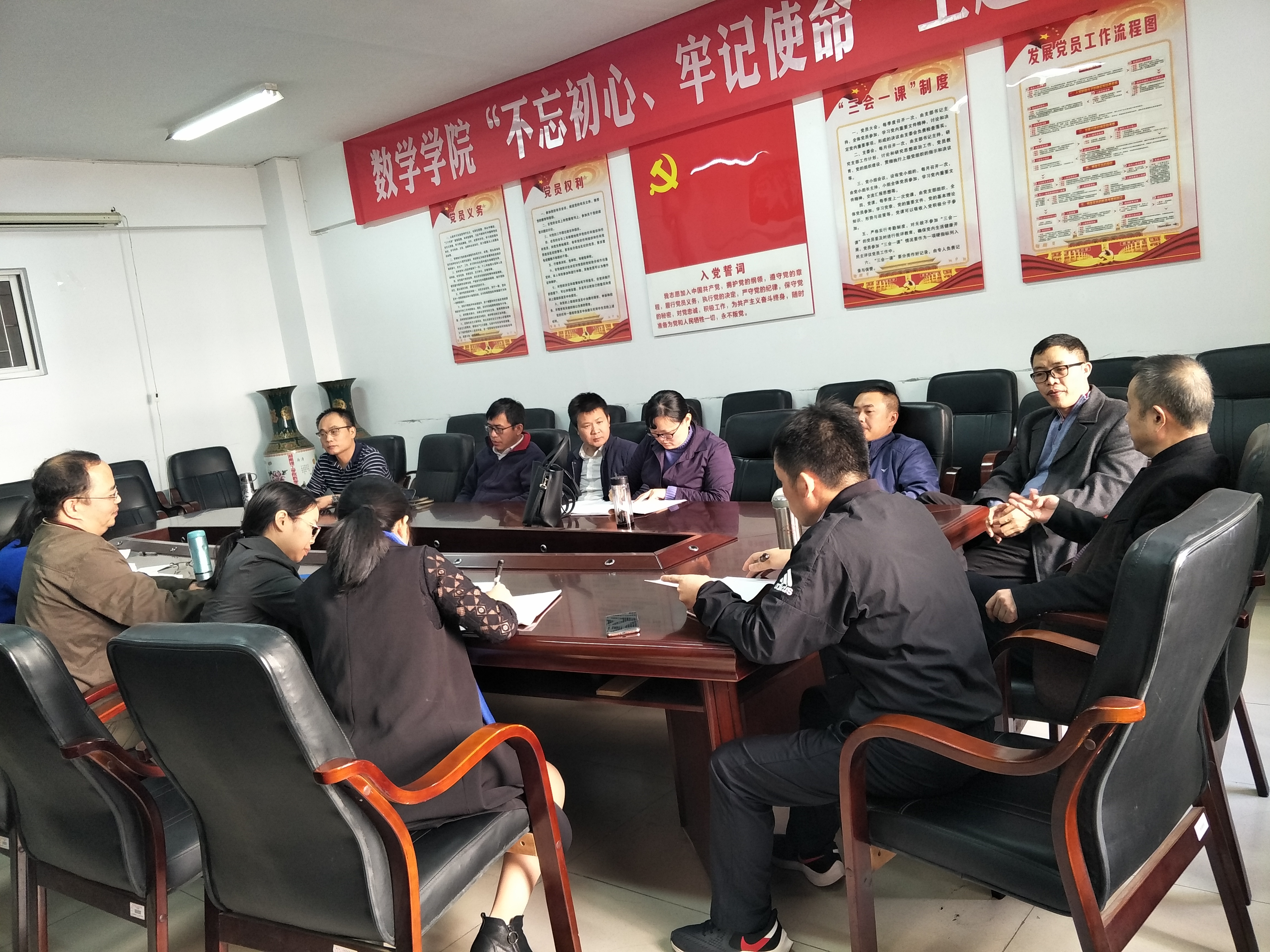 2019年11月14日上午,按照本学期教研活动计划,结合期中教学检查,信息与计算科学教研室开展了公开课和听课评课的教研活动,组织本教研的老师们先后听了赵海国、刘朝才、李新平等三位老师的课,特别是李新平老师的公开课。院长江五元教授,学院督导丁卫平、张再云、黎丽梅等老师和教研室全体老师参加了李新平老师的公开课听课评课活动。本着互相学习,共同提高的宗旨,在评课时,老师们积极发言,讨论热烈,在肯定李老师上课优点的同时,着重指出了问题和不足之处。