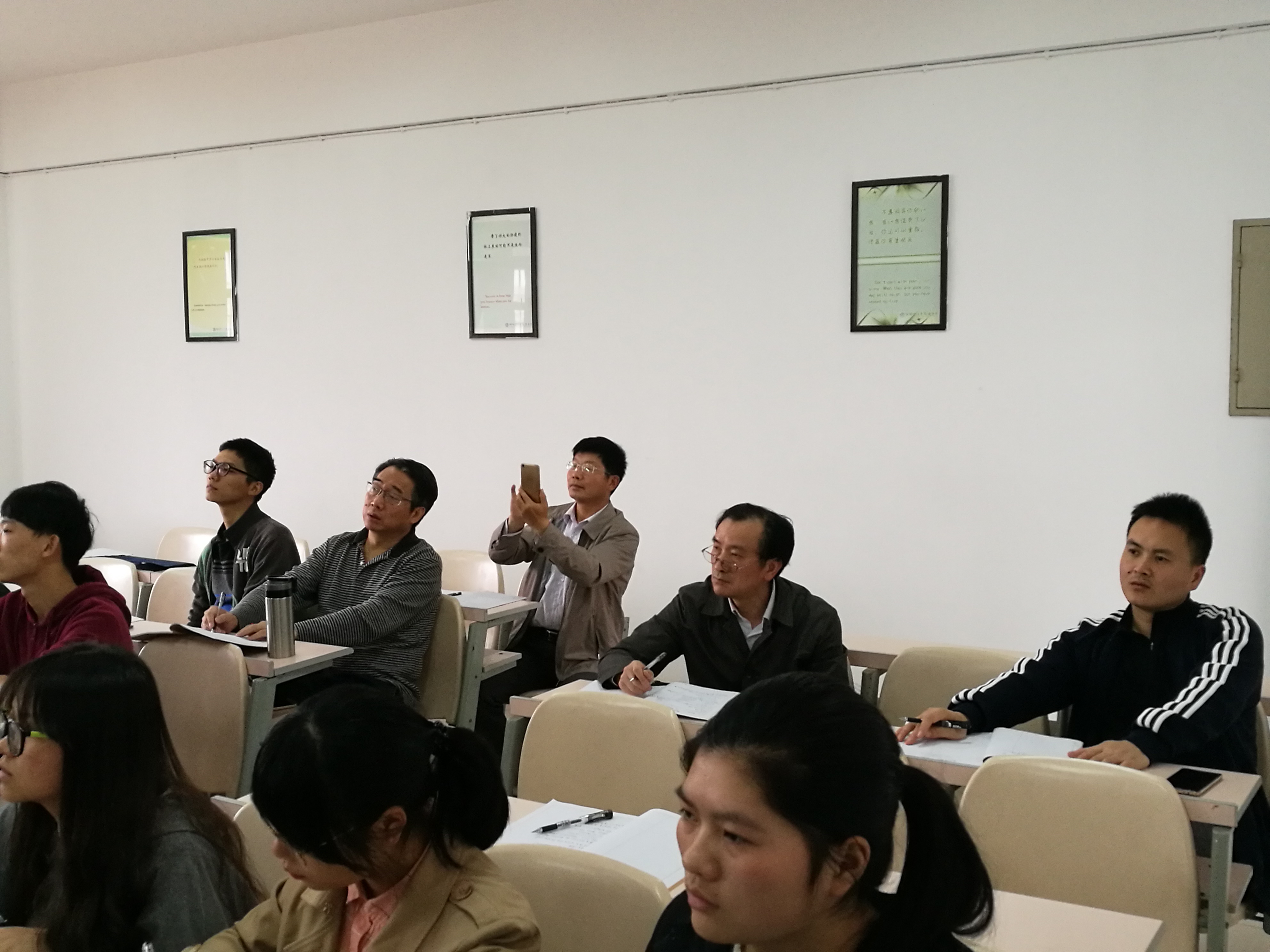 本学期近两年新进两位博士罗德仁、周潘岳老师承担了高等代数课程,学院督导组与高等数学教研室联合开展系列教研活动,4月26日高等数学教研室组织安排了两位博士的高等代数公开课,本院督导组成员与部分教师参与了听课活动,课后针对两位博士本堂课教学进行了沟通交流。