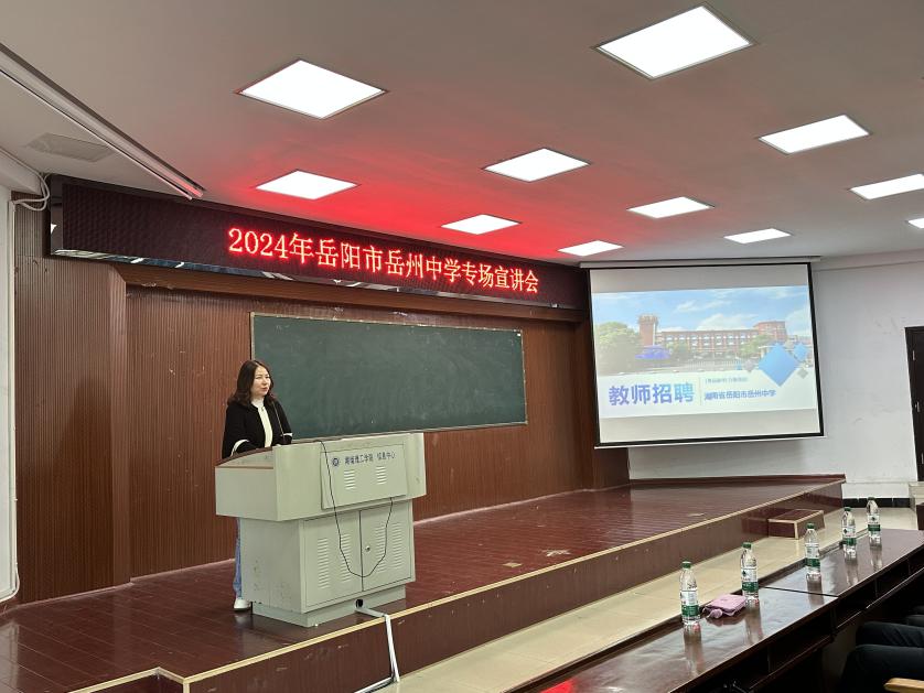 10月25日下午,由开云kaiyun官方网站主办岳州中学专场宣讲会在6栋学术报告厅顺利举行,开云kaiyun官方网站、物电学院及化工学院部分应届毕业生参加了此次宣讲会。岳州中学的相关负责人详细介绍了学校的教育特色、教学方法、教育理念及招聘要求。在随后的互动环节,与会同学提出了关于招聘流程、福利待遇、职业发展机会等问题。主讲人结合岳州中学的现状和未来规划,为同学们一一解答。