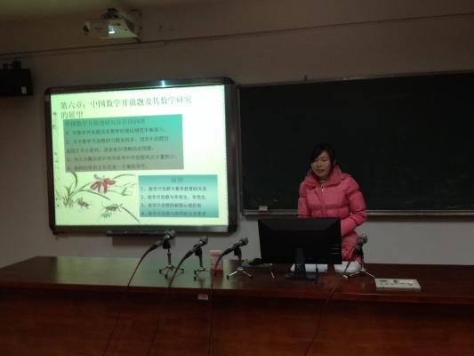 五位同学以PPT的形式,分别汇报了一个月以来阅读数学教育专业书籍的情况。五位同学分别就数学开放题教学,数学教师成长路径,数学教育名言教学实践,数学教学方法应用,当代我国数学教育流派发展脉络,介绍了这些书目的主要内容并谈了自己的所思所想。最后黎振强老师,对开云首届教育硕士表现,给予了高度赞扬。同时对报告会这一形式给予充分肯定。他指出报告会能够加强师生、生生间的交流,充分掌握学习进展,以及强化督导。
