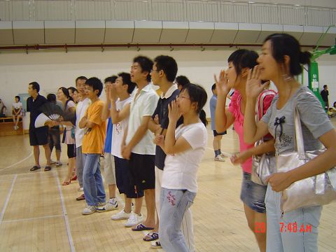 5月27日7:30,数学系教工队与社科部教工队在东院新体育馆进行第二场排球比赛,数学系甘向阳老师、丁卫平老师等参加了比赛。