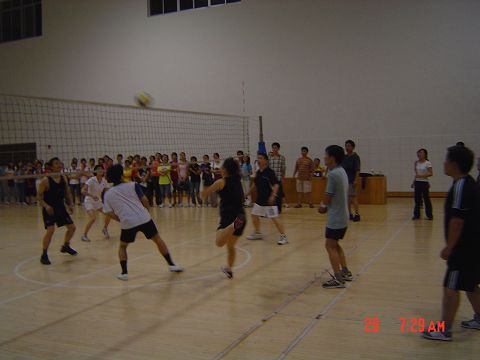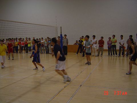 5月28日晚,数学系与外语系之间的教职工排球赛在东院体育馆进行,数学系党总支书记甘向阳,系副主任周立仁、丁卫平等老师参加了此次比赛。