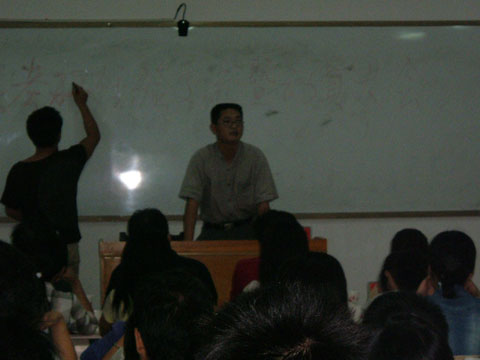 李凤高老师代表数学系对所有考研成功的学生表示祝贺。他对数学系学生考研形势进行了分析,对考研的各项事宜做了详细的说明,鼓励04级学生积极报考。随后张殊歧老师回顾了数学系近几年来的考研情况,从99级开始,数学系的考研率呈上升趋势。今年,共96人报考研究生,30人被录取,其中10人成功考上公费研究生。他鼓励同学们以成功考研的学生为榜样,积极准备,努力学习。