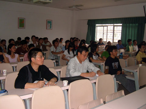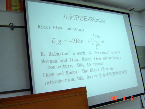 下午3:00,在5309教室,简怀玉教授讲学的主题是《现代偏微分方程的重要问题》,报告介绍了偏微分方程的发展历史、与其他学科的联系、重要问题及其现代进展、中国数学家在该领域的贡献等,听讲座的师生感觉受益非浅。