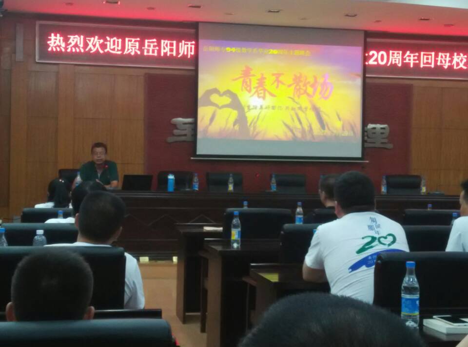 2017年7月29日上午9:30,原岳阳师专数学系1997届校友为纪念毕业20周年,于北院办公楼214会议室举行“青春不散场”主题班会。学校校友办周畅主任,化工学院党总支副书记李会元,开云kaiyun官方网站党总支书记阳鲁平,开云kaiyun官方网站副院长周立仁及相关教师出席,以及1997届近60位校友参加。
