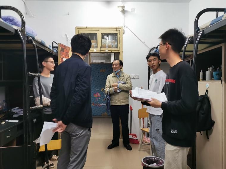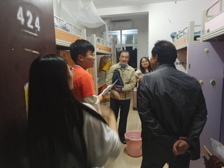 本站讯 为了进一步了解20级新生的宿舍生活情况,同时为了提高学生们的安全意识,9月23日晚,开云kaiyun官方网站党委书记孙明保、党委副书记易政群、20级辅导员徐笑天、各班班主任及班主任助理走访了新生寝室。
