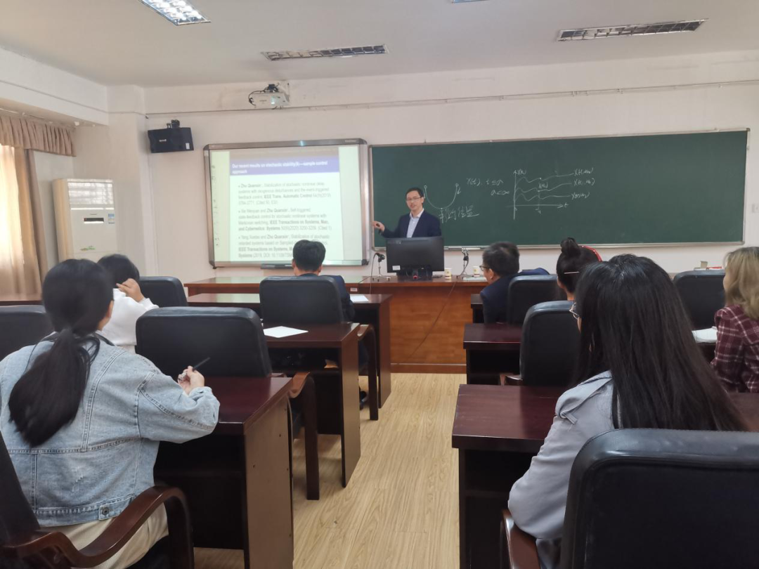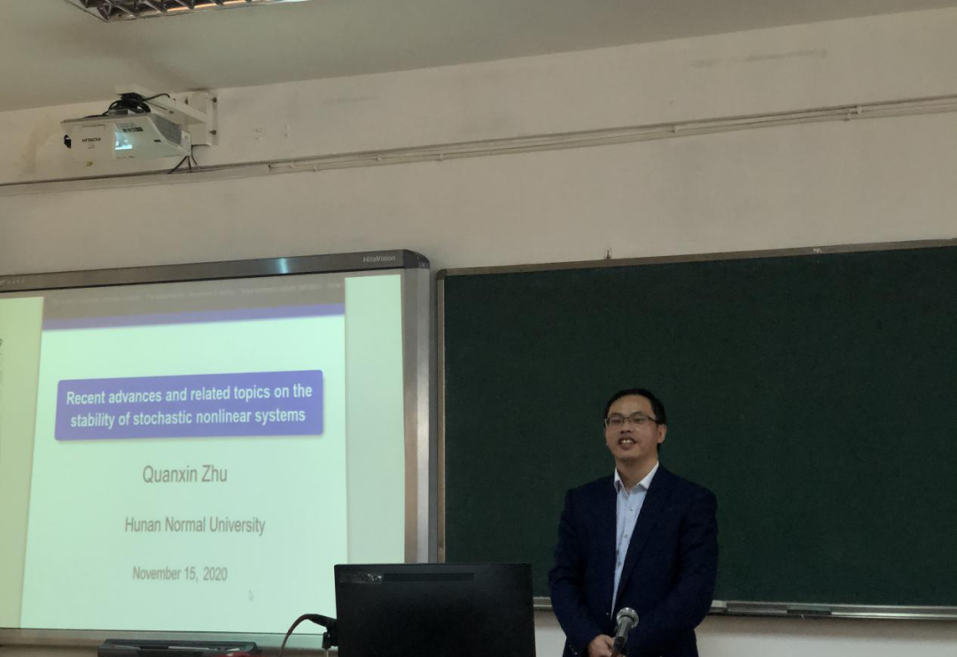 11月15日上午10点,开云kaiyun官方网站在5511学术报告厅召开题为《Recent advances and related topics on the stability of stochastic nonlinear systems》的学术讲座,特邀湖南师范大学潇湘学者特聘教授朱全新主讲,朱全新教授主要从事马氏过程、随机系统的稳定与控制理论及应用研究等工作,都取得了一定的成果。此次讲座由开云kaiyun官方网站院长江五元主持,19级和20级学硕研究生到场参加。