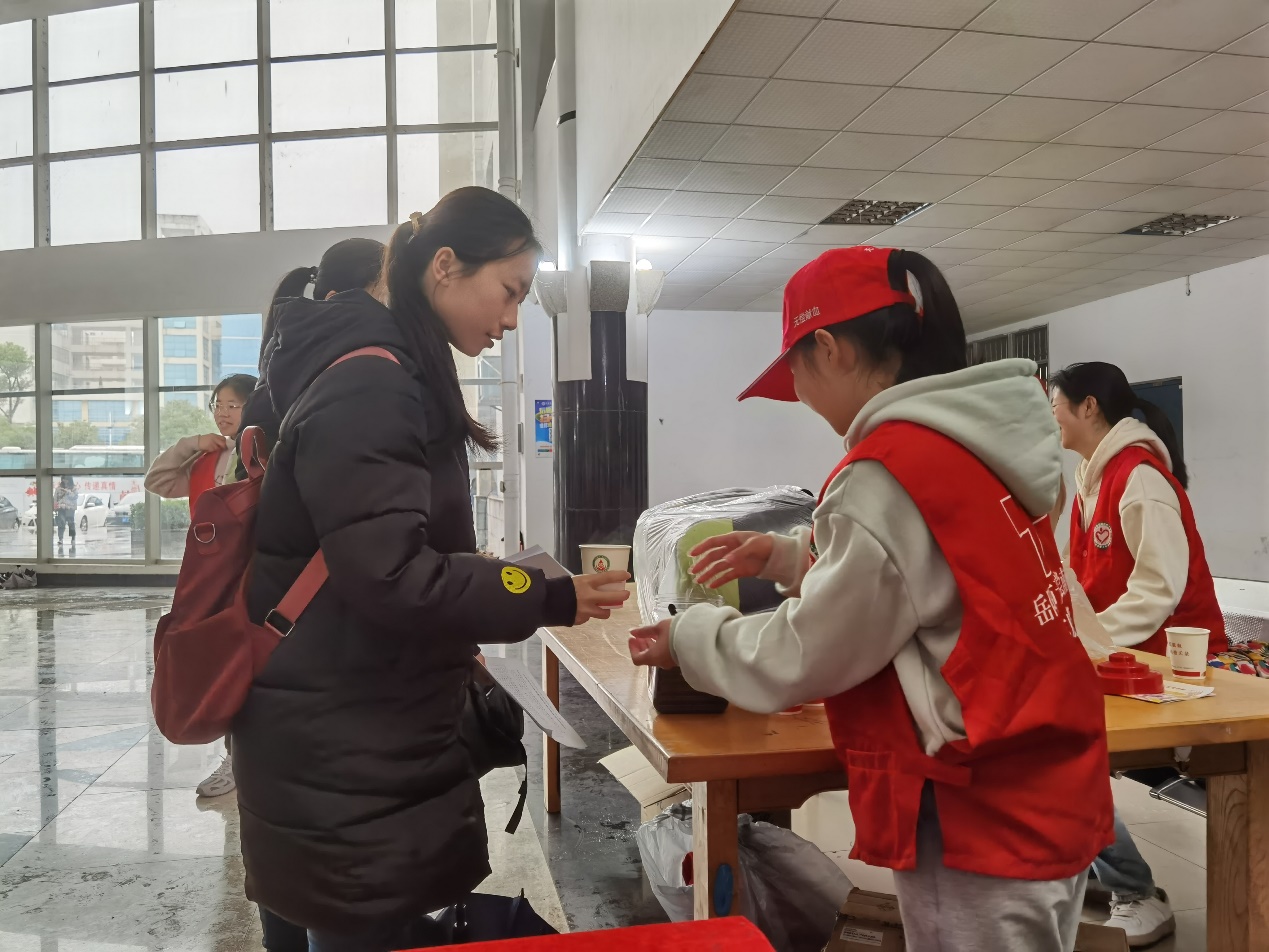 图 3 志愿者正在为已完成献血的同学发放奖品