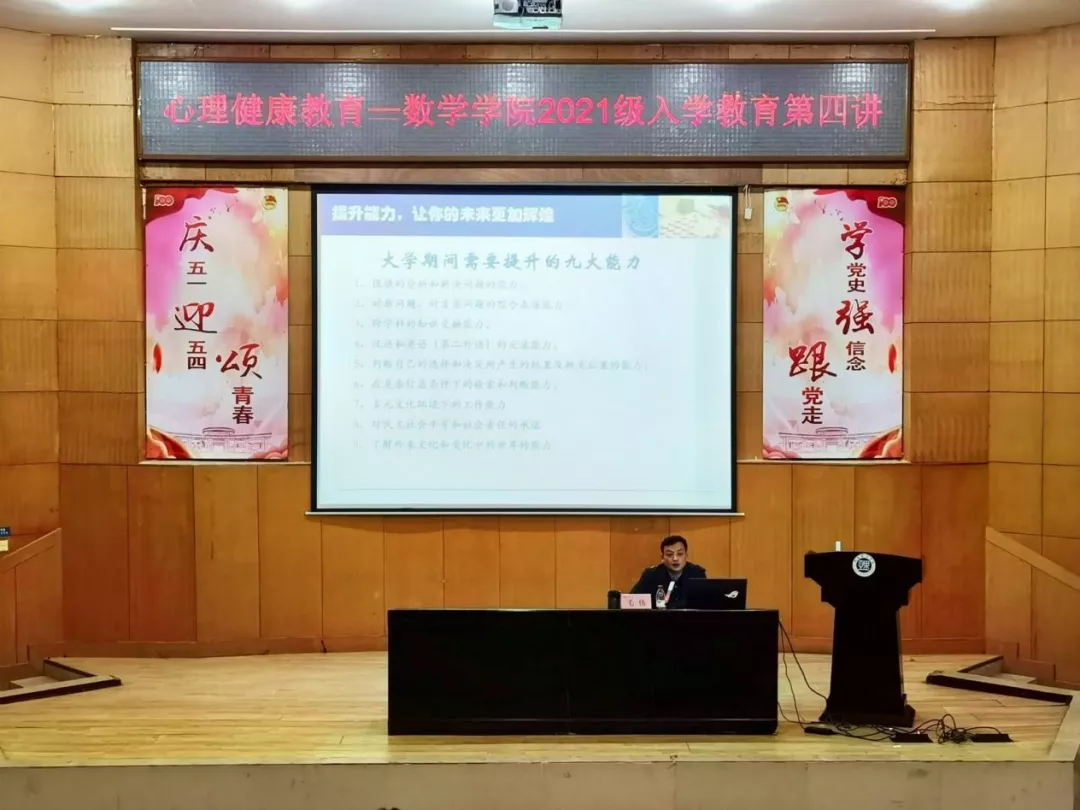 本站讯 11月3日晚,开云kaiyun官方网站于东院学术报告厅召开2021级新生入学教育第四讲——心理健康育。本次活动由党委学工部副部长毛伟主讲,辅导员傅丹出席,全体2021级新生参加讲座。