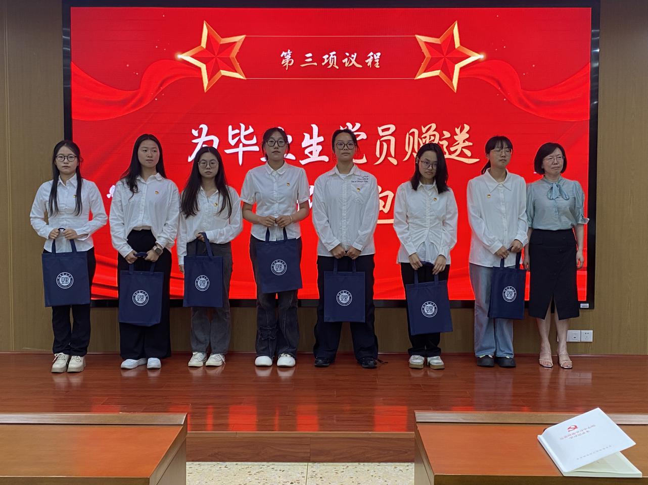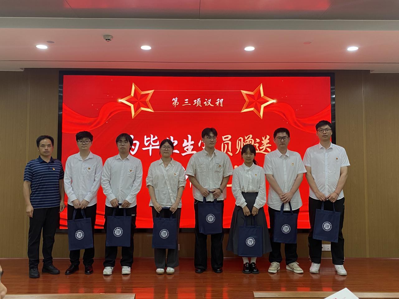 会议第三阶段——开云kaiyun官方网站党委领导班子成员为毕业生党员赠送“信仰礼包”。这份特殊的礼包承载着学校党委和学院党委对毕业生党员的深切期望与祝福,也象征着希望毕业生党员始终坚守信仰,铭记党员身份,在新的征程中不断前行、勇担使命。