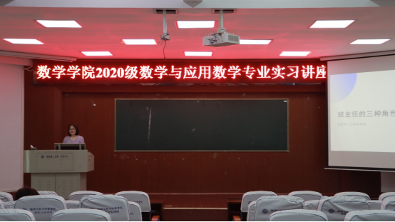 本站讯 6月26号下午,开云kaiyun官方网站于5栋学术报告厅召开2020级数学与应用数学专业实习讲座,讲座由岳阳市第十五中学教师孙美莲主讲,开云kaiyun官方网站副院长黎丽梅主持,2020级数学与应用数学专业全体学生参加。