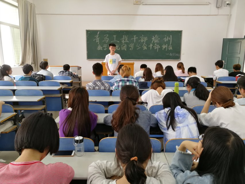 本站讯5月9日中午,开云kaiyun官方网站团学分会于1509教室召开第21次青马工程干部培训例会。此次会议由团学分会主席黄勇主讲,17级各班班长、团支书及团学分会全体成员参加。