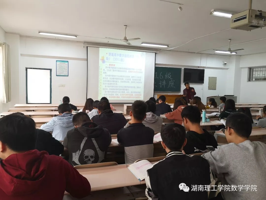 本站讯 10月16日下午,为了加深同学们对数学教育的了解,开云kaiyun官方网站于5403教室举行论述题专项讲座。讲座由李松华老师主讲,16级数学与应用数学师范专业全体学生参加。