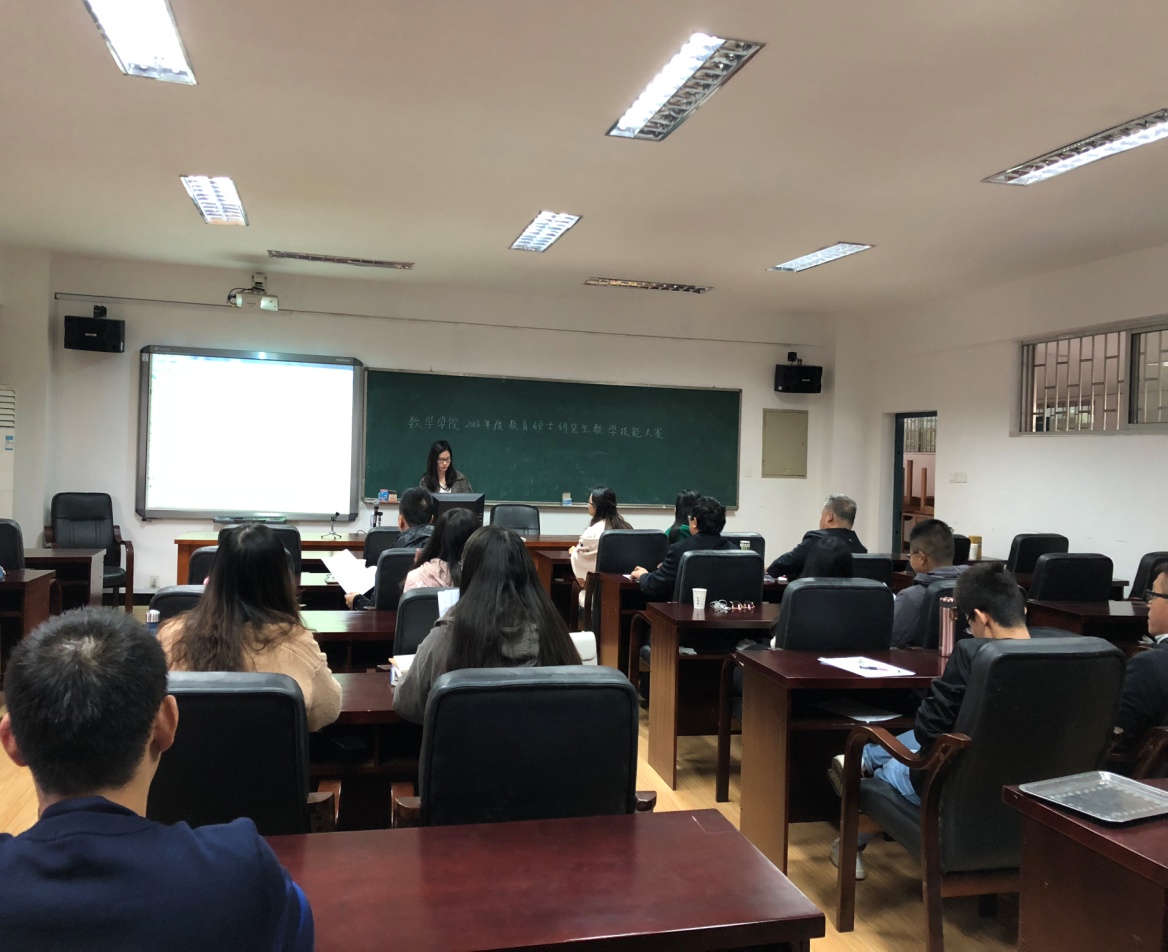 2018年11月7号下午,在开云kaiyun官方网站学术报告厅5511举办了开云kaiyun官方网站2018年度教育硕士(学科教学·数学)研究生教学技能大赛,此次比赛也是开云kaiyun官方网站举办的首届教学技能大赛。此次比赛受到学院领导和老师的高度重视,要求开云kaiyun官方网站全体研究生参加这次比赛,由孙明保院长、张映辉副院长、甘向阳书记、禹辉煌老师担任本次大赛的评委。