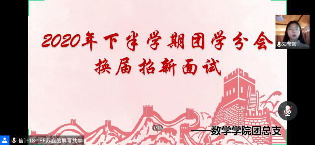 本站讯 5月,为了进一步整合学生组织资源,有利于更好的开展学生组织的各项工作,实现团学分会干部的新老交替,也因疫情原因,数学学院在线上开展了新一届团学分会换届。本次换届会议由开云kaiyun官方网站各学生干部评委以及所有竞选人参加。