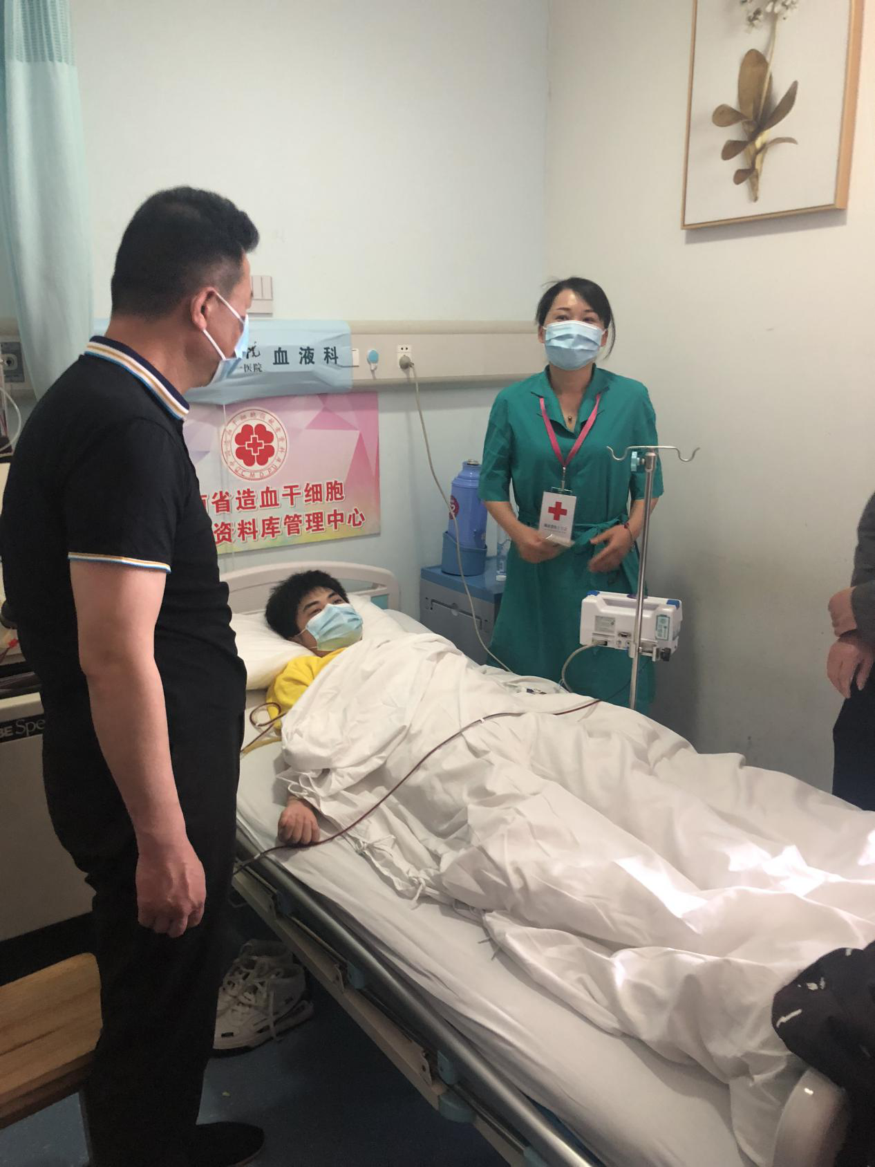 29日早捐献前,学校学工部负责人和学院领导老师们带着全校师生的心意去医院看望和慰问这位勇敢的男孩,为他带去了校、院慰问金以及“校长奖学金”表彰文件。老师们详细地询问了周晨曦的身体状况和精神状态,大力表扬他的善举为全校师生起到了模范带头作用,也为患者架起了生命的桥梁。