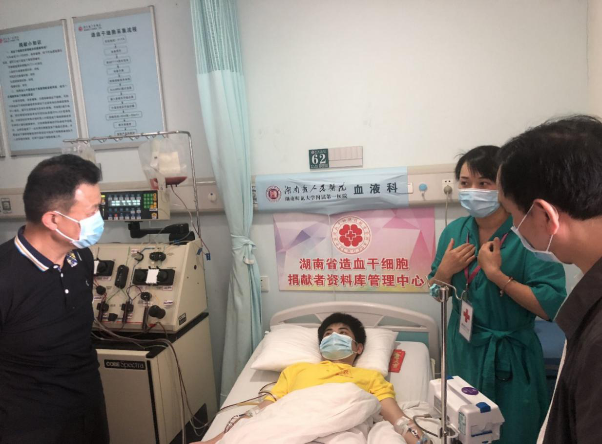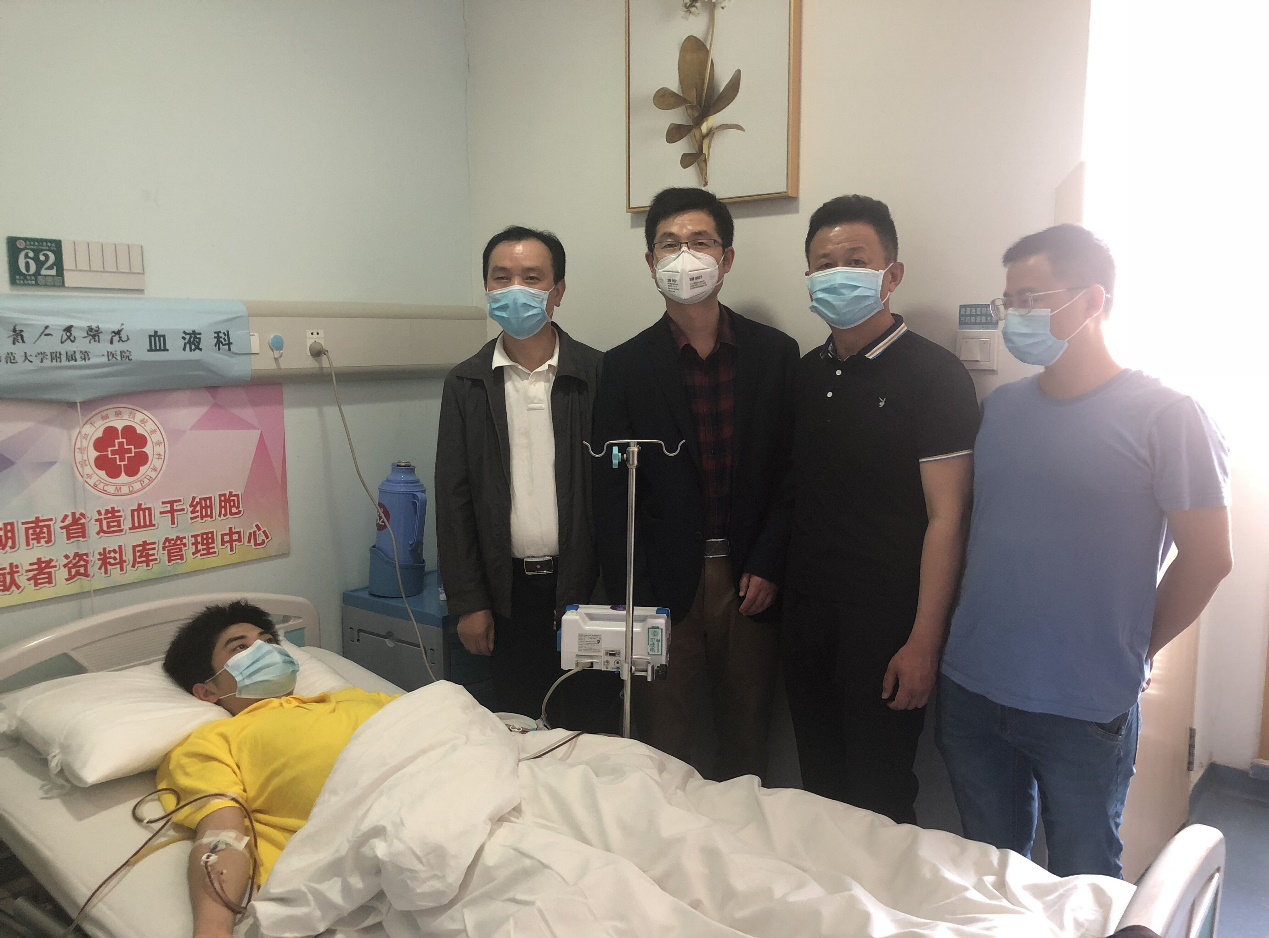 本站讯 4月29日,开云kaiyun官方网站18级信息与计算科学二班的周晨曦同学在湖南省人民医院进行了造血干细胞捐献。近十几年来,开云kaiyun官方网站开云kaiyun官方网站一直坚守与岳阳市血站的合作,给无数人传递了生的希望。周晨曦同学是开云kaiyun官方网站第一位进行造血干细胞捐献的学生。学校学工部副部长王云朋和开云kaiyun官方网站书记孙明保、副书记易政群、辅导员李哲君前往看望,并送上校长奖学金和学院慰问金。