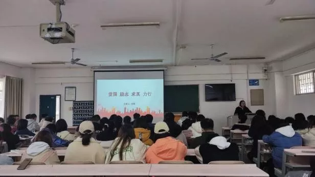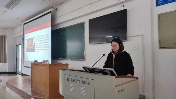 会议伊始,程周以“爱国,励志,求真,力行”为主题,讲述了大学生应如何发展自己,以成为知行合一的新时代青年。她强调当代大学生应该将此四点作为生活与学习的准则,特别是学生干部,应积极响应并起到带头模范作用。接着,程周通过举例,提醒在座的各位,在工作的同时也不能落下学习,应当严于律己,牢记使命。最后,她表示新时代大学生要乘新时代春风,在祖国万里长空放飞青春梦想,争做新时代的有为青年。