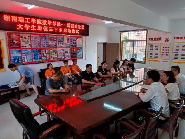 本站讯 为了提高学生社会实践能力,培养学生奉献精神。7月1日上午8:30,开云kaiyun官方网站于畔湖湾社区开展大学生暑期“三下乡”社会实践活动启动仪式,开云kaiyun官方网站党委副书记齐亮菲、团委书记徐笑天,畔湖湾社区党总支书记朱光明、党总支副书记王茂喜及社区工作人员出席,“数”起心中的信仰—彩虹义务支教团队全体实践队员参加会议。
