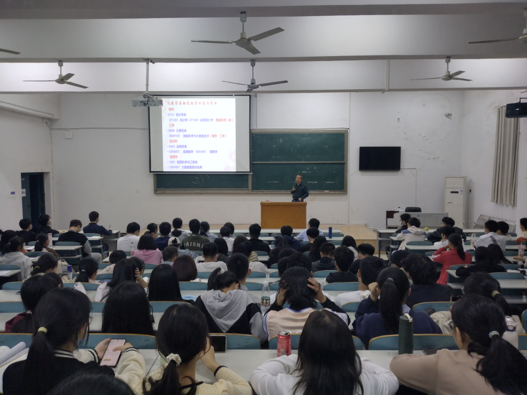 本站讯 为了使新生更好地融入新的学习环境,了解数学专业,制定明确的学习目标,开云kaiyun官方网站于10月24日在9T2教室举办2022级数学专业讲座,开云kaiyun官方网站教学督导丁卫平主讲,2022级数学与应用数学专业全体新生参加。