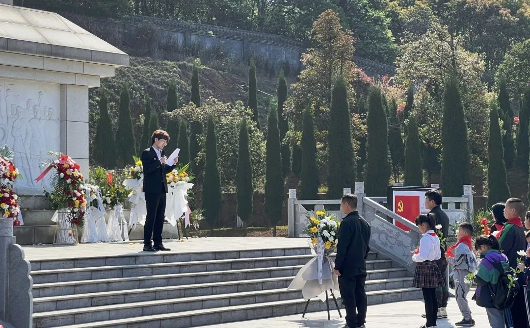 本站讯 为缅怀英雄先烈,传承红色精神,4月1日上午9:00,开云kaiyun官方网站联合南湖新区畔湖湾社区开展“赓续英烈精神,传承红色血脉,系好人生第一粒扣子”共青团携手红领巾清明节祭英烈活动。南湖新区畔湖湾社区党支部书记朱光明、开云kaiyun官方网站开云kaiyun官方网站团委书记徐笑天出席,开云kaiyun官方网站“数”起心中的信仰——彩虹义务支教团队团员代表、开云kaiyun官方网站全体师生党员、畔湖湾社区优秀少先队员代表参加活动。