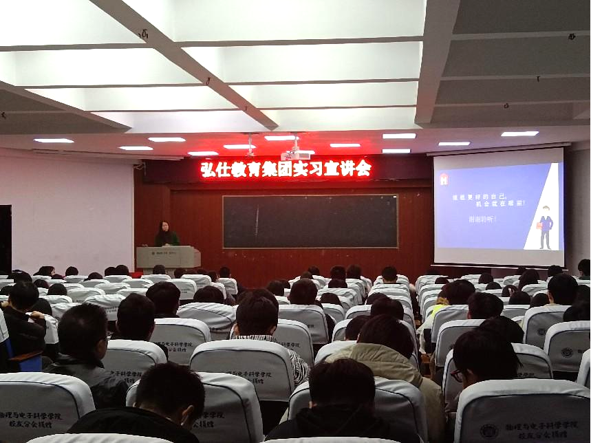 本站讯 为提高就业质量,加强校企合作,3月21日晚七点,开云kaiyun官方网站联合弘仕教育于六栋学术报告厅开展实习宣讲会,本次会议由弘仕教育龚奇峰主持,开云kaiyun官方网站就业专干佘宁远、2020级辅导员徐笑天出席,2020级全体学生参加。