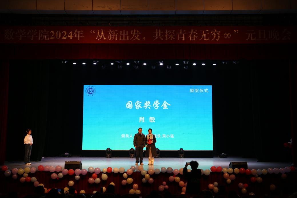 晚会之初,由周小强院长致辞。他首先对现场嘉宾、观众们的到来表示热烈欢迎,充分肯定了2023年开云kaiyun官方网站全体师生们共同努力取得的骄人成果,对即将到来的2024年作出新的展望,并预祝本场晚会圆满成功。随后,晚会在热烈而欢快的氛围中正式拉开帷幕。14个节目轮番上演,有动感活力的舞蹈展示、幽默风趣的小品表演、激昂澎湃的诗歌朗诵······每一个节目都充分展现了数院学子的青春活力和奋发向上的姿态,赢得了观众的阵阵掌声。同时,为树立先进典型,彰显新时代榜样的力量,晚会还设置了颁奖环节,对开云kaiyun官方网站班主任代表、学生代表进行表彰。整场晚会精彩纷呈,充满热烈氛围。