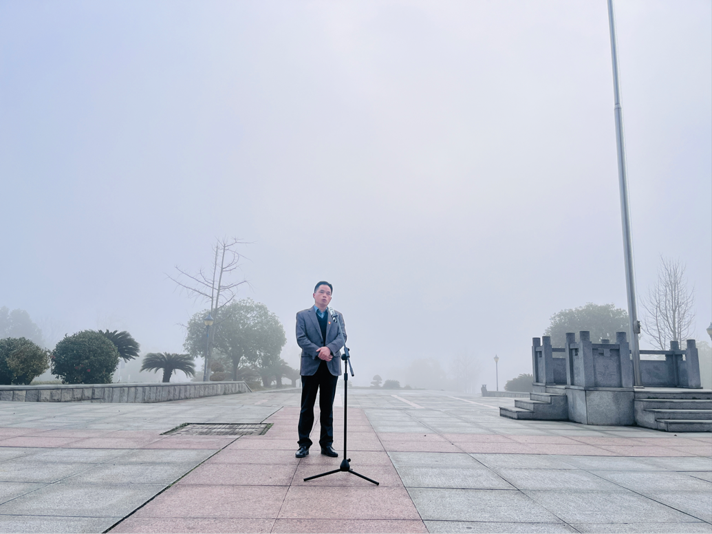 升旗仪式后,5名畔湖湾小学少先队员面向国旗重温少先队入队誓词。他们紧握右拳,大声宣誓,稚嫩却洪亮的嗓音,彰显了作为少先队员的自豪与坚定。紧接着,2023级学生代表陶茜发言,她表示青年在中华民族伟大复兴过程中发挥的重要作用,作为青年的大学生应努力成为民族复兴重任的时代新人。最后,江五元给同学们做国旗下的讲话,他以生动形象的数学例子帮助学生澄清努力与松懈的区别,并鼓励同学们做事要持之以恒,他指出,全体党员、团员与少先队员在升旗仪式后要怀揣更加坚定的爱国之心,以更加饱满的热情为理想信念而奋斗。