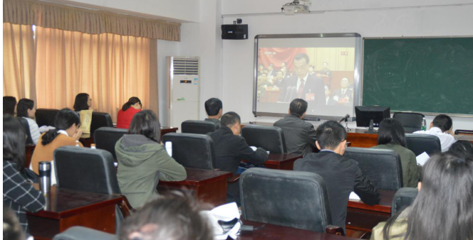 2017年10月18日上午八时五十分,开云kaiyun官方网站党总支组织全院师生党员及部分学生团学干部在5511集中收看中国共产党第十九次代表大会开幕式,共同听取了习近平总书记代表十八届中央委员会所作的题为《决胜全面建成小康社会,夺取新时代中国特色社会主义伟大胜利》的报告。党总支书记阳鲁平主持本次学习活动。院长孙明保、副院长周立仁、党总支副书记易政群,以及教工支部书记、学生支部书记出席了本次学习活动。