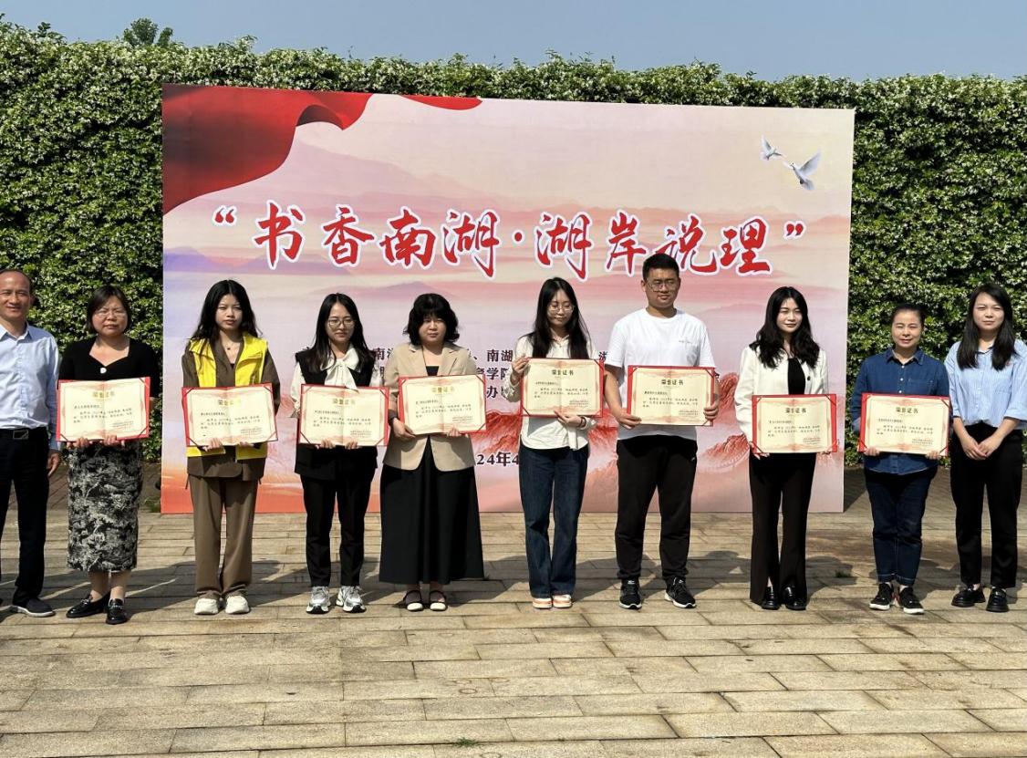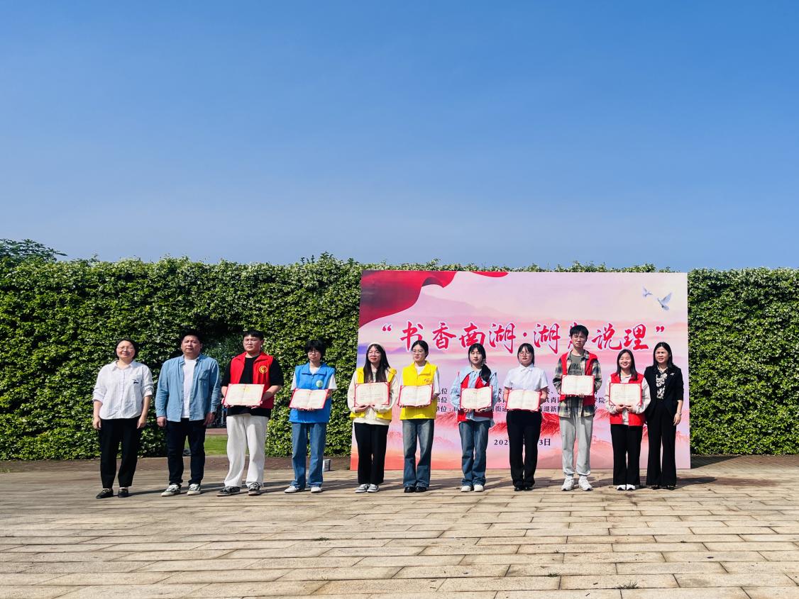 4月23日下午,由南湖新区关工委,南湖新区团委,南湖新区科协主办,湖南理工学体育学院党委,共青团开云kaiyun官方网站委员会协办,南湖新区南湖街道办事处,南湖新区畔湖湾小学承办的“书香南湖·湖岸说理”青年理论学习会暨“校地共建·五社联动”2023年度表彰会在岳阳花语世界顺利开展。开云团委书记赵馨携“数”起心中的信仰—彩虹志愿服务团16名志愿者参与此次活动。